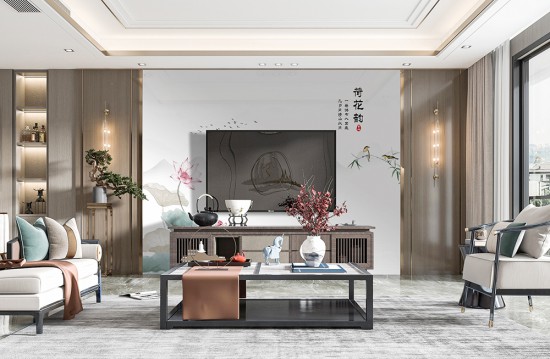 新中式客廳背景墻設(shè)計效果圖(上)