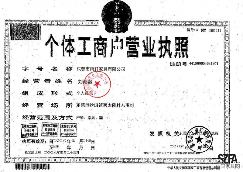 | 發(fā)證機構(gòu): | 東莞市工商行政管理局限 | 發(fā)證時間 : | 2006-05-23 |