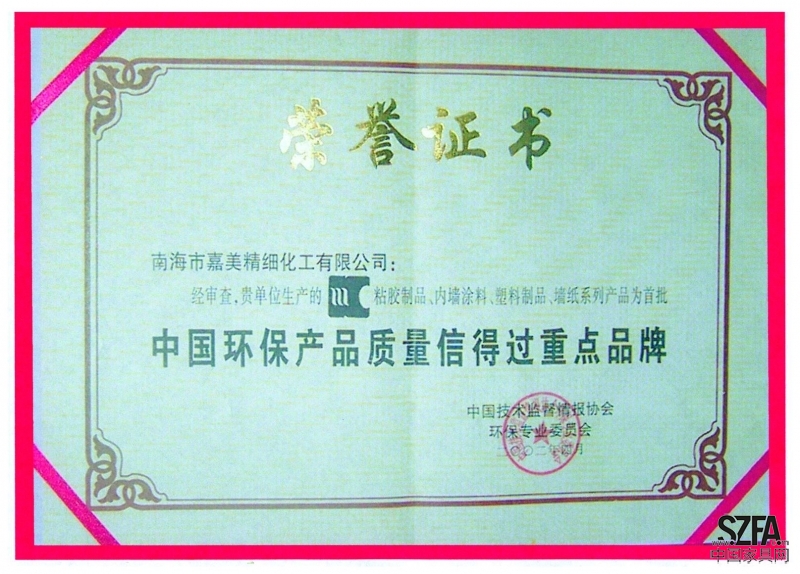 首批中國環(huán)保產(chǎn)品質(zhì)量信得過品牌