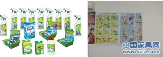 小白兔干洗店內(nèi)推出的愛潔家家電清潔劑產(chǎn)品