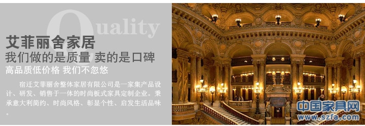 艾菲麗舍依托高科技創(chuàng)新產(chǎn)品的新概念,擁有數(shù)碼化虛擬設(shè)計(jì)、數(shù)碼化虛擬生產(chǎn)、數(shù)碼化虛擬裝配系統(tǒng)。同時(shí)擁有先進(jìn)自動(dòng)生產(chǎn)設(shè)備,還有一批來自外資大型企業(yè)年輕而富有創(chuàng)造力的營銷精英、設(shè)計(jì)團(tuán)隊(duì)、以及從事板式家具加工生產(chǎn)多年的專業(yè)技術(shù)人員。傾力打造高品質(zhì)家具,滿足國內(nèi)外消費(fèi)者的不同需求。