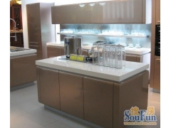 人造石具有色彩絢麗、式樣繁多、耐污漬、易清潔、抗化學腐蝕、無孔結構、加工簡便、安裝無明顯拼縫及加熱可彎曲造型的特點,這些特點可以廣泛應用于公共場所、家庭裝飾及各商用背景裝飾。如:酒店、銀行、醫(yī)院、展覽場所、實驗室的衛(wèi)生間、柜臺、工作臺、接待臺、展柜等;家庭裝飾的櫥柜臺面、洗手臺、人造石石英石餐桌、茶幾、窗臺、門套等等??赏ㄟ^與玻璃、木材、瓷磚或不同顏色的配合使用,可實現(xiàn)多種獨特設計,并可通過雕刻制成各種圖案。人造石作為一種無放射性污染、可重復利用的環(huán)保、綠色新型建筑室內裝飾材料,以其一流的品質和服務,必將引領未來裝修潮流。可為各大櫥柜公司、裝飾公司、家具廠、展柜廠、浴柜廠、個人、學校、醫(yī)院、政府機關、無菌實驗室、門市等訂做各種人造石、石英石臺面