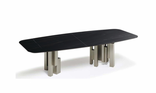 產(chǎn)品介紹:這款餐桌的桌面采用黑色石材材質(zhì),
