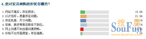 眾所周知,網(wǎng)購(gòu)的好處是方便、便宜,但是對(duì)于家居商品而言,它所涉及的硬傷卻不少。在“您對(duì)家具網(wǎng)購(gòu)的擔(dān)憂有哪些?”的題目中,網(wǎng)友對(duì)于質(zhì)量、價(jià)格、溝通、售后服務(wù)等問(wèn)題的投票都較為平均,而“安裝、換貨等售后等售后服務(wù)不到位”以23.7%的比例首當(dāng)其沖,而“以次充好”、“存在色差”等眾多問(wèn)題也讓消費(fèi)者對(duì)家具網(wǎng)購(gòu)不得不考慮多三分。