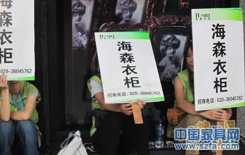“人頭營(yíng)銷”是展會(huì)的??停蹅兘裉煊浾咭f(shuō)的是這“意外的”營(yíng)銷。海森衣柜的服務(wù)人員以外的在路邊休息,反而引來(lái)了很多人的圍觀,這就是最“意外”的宣傳效果了。