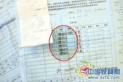“我要的是實木的,訂單合同上也寫的是櫻桃木,實際上卻是中纖板,這不是玩弄消費者嘛?。?rdquo;韋先生說著,用小刀割開家具表面給記者看,電視柜的面板、底板及隔板內(nèi)部,確實不是實木,而是像紙殼一樣的物質(zhì),而韋先生拿出的合同上主材一欄明確寫著“櫻桃木”,輔材一欄則是空白。