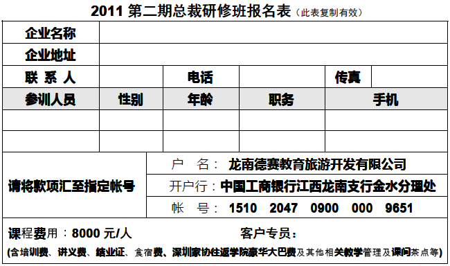 學(xué) 費(fèi):8000元/人(不含學(xué)員駐地至深圳及學(xué)員自行前往龍南的交通費(fèi))。
