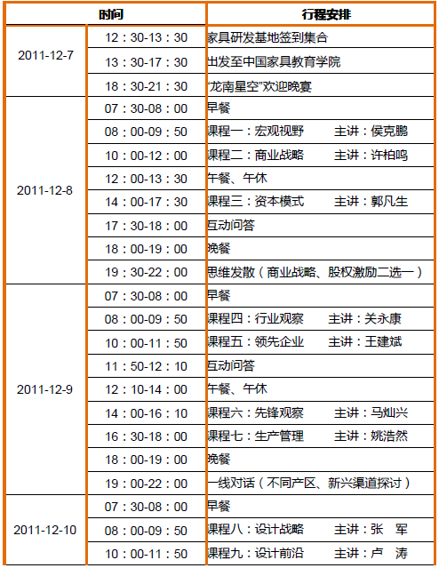 011年第二期總裁研修班內(nèi)容介紹與行程安排
