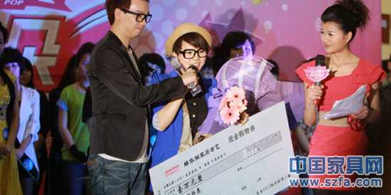 給冠軍李美姿頒發(fā)由蝶依斕家居布藝贊助的萬(wàn)元大獎(jiǎng)