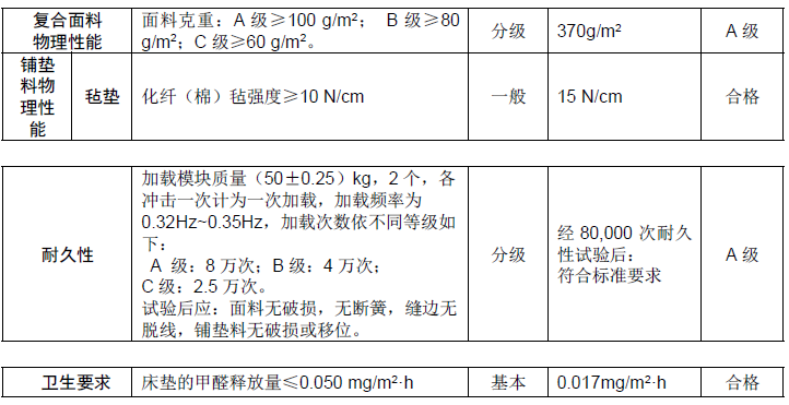 ·檢測標(biāo)準(zhǔn)號:QB 1952.2-2004《軟體家具 彈簧軟床墊》
