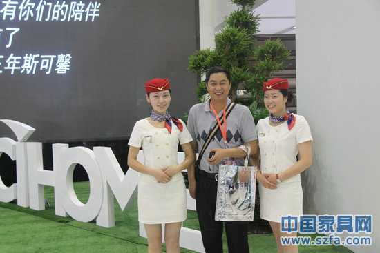 據(jù)了解,斯可馨本次展位設(shè)計(jì)融入了現(xiàn)代技術(shù)手段,全觸屏大型平板電腦,展示斯可馨各系列產(chǎn)品圖解及相關(guān)企業(yè)文化、新聞,受到了參觀者的高度評(píng)價(jià);斯可馨“馨福十三年”系列慶典活動(dòng)展現(xiàn)了一個(gè)充滿激情的團(tuán)隊(duì)面貌,分工明確,在各系列產(chǎn)品分館前都有固定的服務(wù)團(tuán)隊(duì);身穿高級(jí)職業(yè)裝的斯可馨“空姐隊(duì)”現(xiàn)場(chǎng)為來訪者服務(wù)。中國(guó)家具協(xié)會(huì)副理事長(zhǎng)陳寶光、蘇州家具博覽會(huì)創(chuàng)始人趙藝學(xué)親臨斯可馨展館,在斯可馨董事長(zhǎng)胡衛(wèi)東的陪同下參觀考察。陳寶光對(duì)斯可馨的綜合實(shí)力和優(yōu)質(zhì)產(chǎn)品贊不絕口,稱贊斯可馨是中國(guó)家具行業(yè)最具成長(zhǎng)力的企業(yè)。