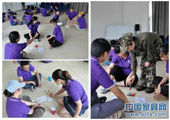 室內(nèi)拓展項(xiàng)目“目標(biāo)市場(chǎng)”——以小組為單位在規(guī)定時(shí)間內(nèi)拼出最多的指定的圖形,達(dá)到目標(biāo)分?jǐn)?shù)。此項(xiàng)目鍛煉學(xué)員的協(xié)調(diào)、合作、策劃和溝通能力。配合度好的團(tuán)隊(duì)可以很快完成或超額完成任務(wù),配合一般的團(tuán)隊(duì),項(xiàng)目進(jìn)行過(guò)程中會(huì)非常吵鬧。