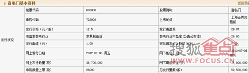 昨日,繼敏華控股、皇朝家私等家具企業(yè)之后,家具行業(yè)又多了一家上市企業(yè)。2012年7月17日9點(diǎn)45分,來自浙江的喜臨門家具股份有限公司在滬深交易所上市,證券代碼為總股本為“603008”。喜臨門家具此次上市總股本為2.1億股,發(fā)行價(jià)為12.5元/股,對(duì)應(yīng)發(fā)行市盈率為29.87倍,其中首次公開發(fā)行的5250萬股今日在上交所上市。針對(duì)喜臨門的此次上市,安信證券預(yù)計(jì)公司上市定位區(qū)間為9.90元-12.10元。