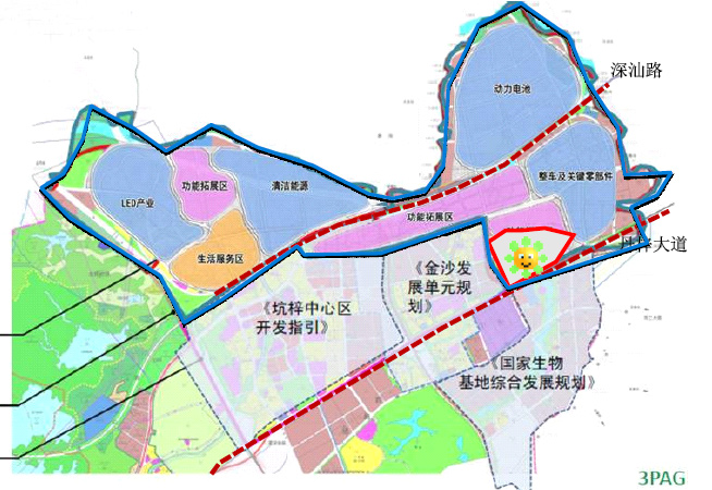 總部基地位于坪山國家新能源基地功能拓展區(qū),西面是金沙社區(qū)和坑梓中心 區(qū),南鄰國家生物基地。