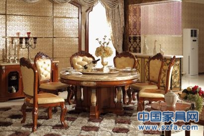 本款產(chǎn)品為1.8米餐臺(tái)并配以8張餐椅,該產(chǎn)品材質(zhì)選用優(yōu)質(zhì)進(jìn)口實(shí)木,結(jié)合大理石與金屬的鑲嵌設(shè)計(jì),提取大理石的高貴與天然的紋理、色彩與金屬配件畫(huà)龍點(diǎn)睛的融洽為一體。