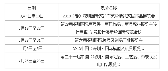 從3月份開始,深圳家居行業(yè)將迎來新一輪的會展密集期。記者從深圳會展中心獲悉,今年上半年該中心將舉辦5場與家居相關(guān)的大型展會。