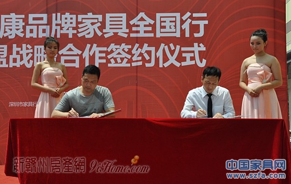 上午10點(diǎn)30分,“中國南康品牌家具全國行”百家戰(zhàn)略聯(lián)盟合作簽約儀式在中心市場(chǎng)隆重舉行,佳興置業(yè)有限公司總經(jīng)理、南康家具產(chǎn)業(yè)促進(jìn)局副局長以及江西省家具協(xié)會(huì)家居商場(chǎng)聯(lián)合會(huì)領(lǐng)導(dǎo)發(fā)表了重要致辭。