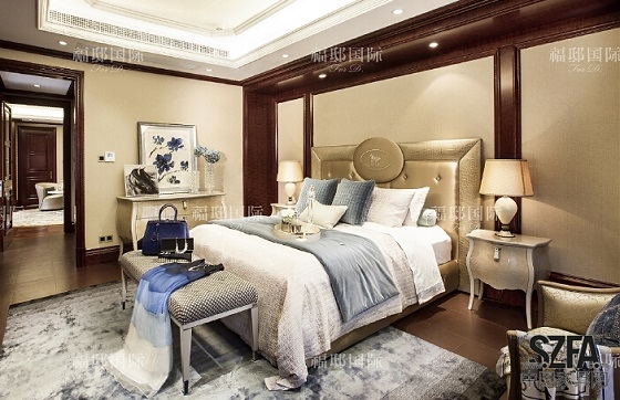 福邸國(guó)際的設(shè)計(jì)團(tuán)隊(duì)為了打破中式戶型只能配中式家具的刻板印象,以“江山大賞”為主題,靈感搭配其旗下代理的Fendi Casa最新家居新品,以穩(wěn)重不失時(shí)尚的色調(diào)如米金色、灰色等彰顯產(chǎn)品醇厚和生活雍容,實(shí)現(xiàn)了中堂奢華的另一種表現(xiàn)方式。成就了一種致敬世界的中國(guó)奢華,也成就了杭州的第一個(gè)FENDI HOME。