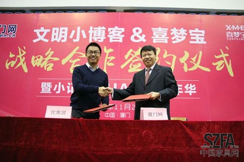 與此同時,優(yōu)客居•喜夢寶品牌傳播部總監(jiān)帥凝風(fēng)先生與廈門網(wǎng)總編輯、海網(wǎng)傳媒董事長林興華先生在現(xiàn)場簽署了戰(zhàn)略合作協(xié)議。這次簽約不僅標(biāo)志著廈門網(wǎng)•文明小博客將和喜夢寶在第三屆、第四屆少兒才藝展演進(jìn)行戰(zhàn)略合作,也代表著雙方在福建省區(qū)域內(nèi)青少年兒童領(lǐng)域進(jìn)行全方位的戰(zhàn)略合作。
