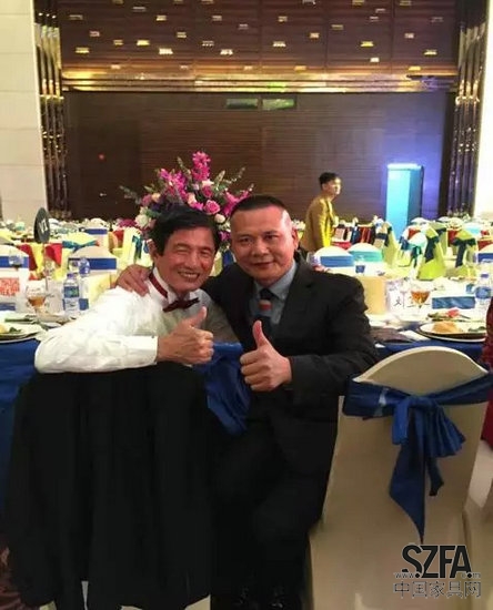 松堡王國(guó)董事長(zhǎng)郭向陽(yáng)(右)與第三屆品牌聯(lián)盟主席陳燕木(左)合影