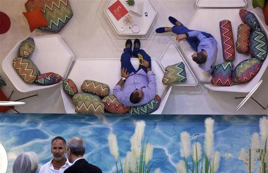 4月12日,來賓在意大利米蘭國際家具展上參觀展品。