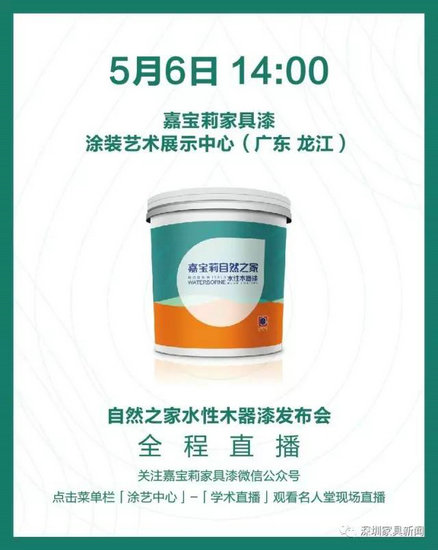 為了讓企業(yè)真正掌握水性漆及其相應技術,5月6日,嘉寶莉家具漆將于龍江館名人堂舉辦一場集新品亮相與大師演說為一體的發(fā)布會,屆時特邀水性木器漆專家屈玉山親臨現(xiàn)場,講述“自然之家”如何成為油轉(zhuǎn)水背后的支撐力并且現(xiàn)場揭秘解決“油轉(zhuǎn)水”難點的大招,提供從產(chǎn)品到整體方案的完善服務。