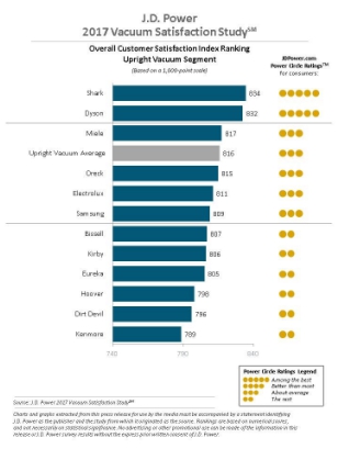 因此我詳細地了解了一下Shark這個品牌。據(jù)全球領(lǐng)先的用戶體驗滿意度市場研究機構(gòu)J.D.Power發(fā)表的2017VacuumSatisfactionStudy(2017年吸塵器客戶滿意度調(diào)查)顯示,Shark在upright吸塵器品牌中客戶滿意度排名第一。