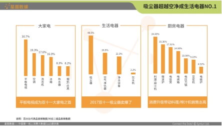 據(jù)《生活電器行業(yè)2018年1月份數(shù)據(jù)報告》顯示,吸塵器憑借當月總銷售額超過2億,穩(wěn)居生活電器行業(yè)核心品類的銷售額前五名;而去年雙十一,吸塵器更是超越空氣凈化器,一躍成為當日生活電器銷售榜第一。當“中國家庭滲透率只有20%”和“全球性市場規(guī)模產(chǎn)品”這兩個看似矛盾的關(guān)鍵詞集于一身,吸塵器產(chǎn)業(yè)事實上已經(jīng)打開一個具有無限發(fā)展?jié)摿Φ目臻g。