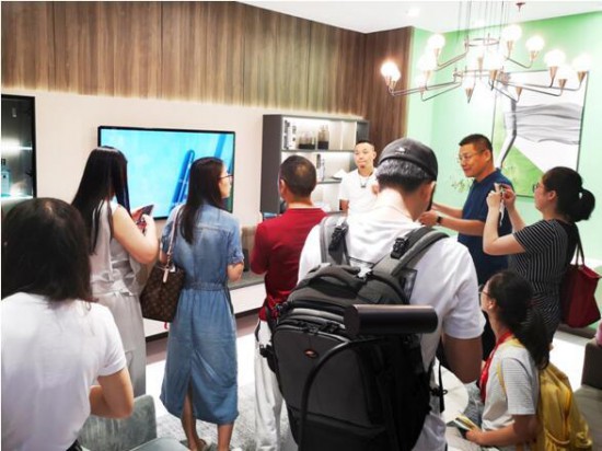 隨后,趙總與各與會嘉賓及媒體朋友參觀展館,并在4.8米高木門處合影。