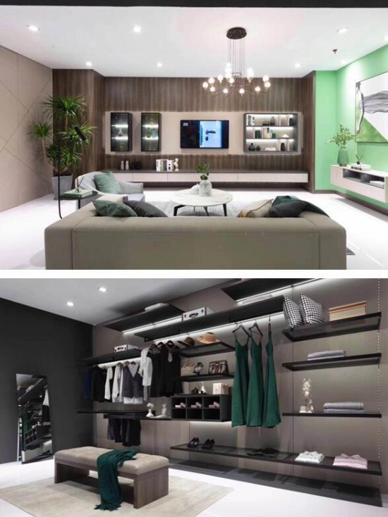 家居功能美學(xué)的內(nèi)在本質(zhì)是適用性,要求室內(nèi)造型的美感要符合人與環(huán)境、人與空間的協(xié)調(diào)關(guān)系,不僅要達到以功能結(jié)合為目的的呈現(xiàn),更要利用美學(xué)原理,追求物質(zhì)需求和精神層面需求的完美結(jié)合。4.8米高的木門,在常規(guī)木門的尺寸基礎(chǔ)上放大了2倍有余,霍爾茨的真正用意在于,突破家具原本的尺度條件,充分考慮到空間的長度、寬度及高度,使人的思維、情感得到解放。另外,對比與和諧、對稱與均衡、節(jié)奏與韻律等形式美法則也可在此得到體現(xiàn)。最值得一提的是,霍爾茨將產(chǎn)品的每一個細節(jié)放大,將霍爾茨木門的整體之美放大,宣示著霍爾茨木門對強大的生產(chǎn)能力和精湛的生產(chǎn)工藝的絕對自信。