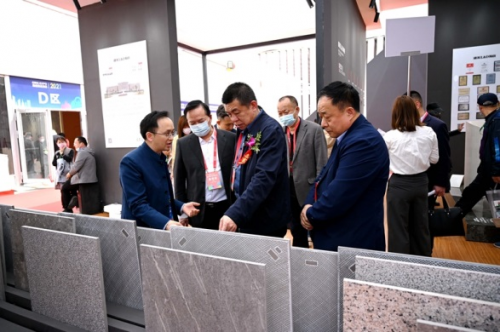 ▲唯美L&D陶瓷總經(jīng)理 吳陽(右)、副總經(jīng)理 喻紅華(左)受邀出席了開幕儀式、峰會(huì)論壇、供需洽談會(huì)等環(huán)節(jié)。