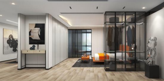 通過(guò)定制入墻柜設(shè)計(jì),把主臥一分為二打造成兩個(gè)不同屬性的空間,以陽(yáng)臺(tái)串聯(lián),增強(qiáng)互動(dòng)性,各空間彼此獨(dú)立又統(tǒng)一,更具通透感與舒適性。