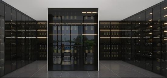 儲(chǔ)物間是居主的私人酒窖,定制柜體排列有序,成為一處展覽廳,彰顯生活品味。