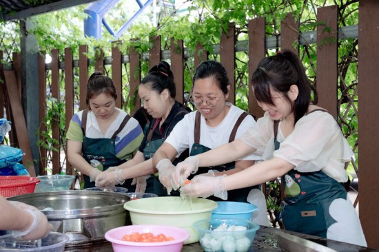 一根根細(xì)線、一張張粽葉,將大家的心緊緊包裹在一起。經(jīng)過四個(gè)小時(shí)的齊心協(xié)作,2200個(gè)粽子就誕生了,大家在歡聲笑語中互相點(diǎn)評(píng)、欣賞彼此的勞動(dòng)成果,并紛紛表示,通過參加公司的端午節(jié)活動(dòng),親身體驗(yàn)包粽子,重溫端午文化傳統(tǒng),不僅鍛煉了動(dòng)手能力、放松了身心,還進(jìn)一步增強(qiáng)了對(duì)傳統(tǒng)文化的認(rèn)同感。
