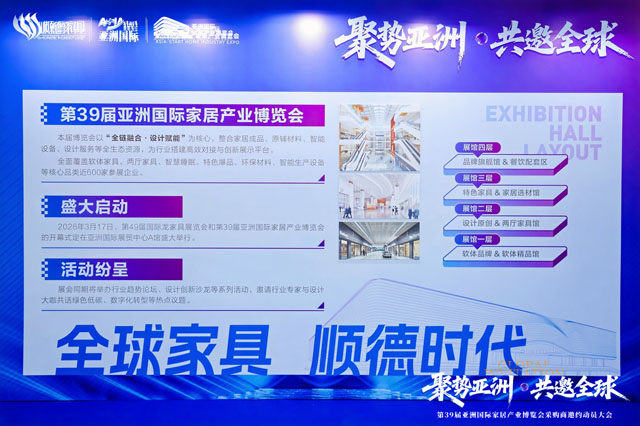 為全面提升第39屆亞洲國際家居產業(yè)博覽會的采購商規(guī)模與商貿對接效率,進一步調動參展企業(yè)邀約積極性,2026年1月6日,“聚勢亞洲·共邀全球”—第39屆亞洲國際家居產業(yè)博覽會采購商邀約動員大會在亞洲國際展貿中心A館成功召開。政府部門及行業(yè)協(xié)會領導、參展企業(yè)代表、組委會負責人及媒體嘉賓齊聚一堂,共同謀劃展會新篇章,正式啟動全球邀約工作。