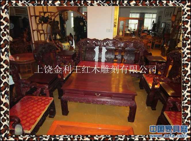 上饒市金利王紅木雕刻有限公司,座落于江西省上饒市經(jīng)濟開發(fā)區(qū)鳳凰園區(qū),是一家專門從事中高檔紅木家具生產(chǎn)的專業(yè)廠家。本公司視質(zhì)量與信譽為企業(yè)生存和發(fā)展的根本,潛心為客戶的利益而開發(fā)創(chuàng)新各種款式別致的優(yōu)質(zhì)產(chǎn)品。本公司產(chǎn)品選材于東南亞進口的黃花梨、紫檀、酸枝、緬甸花梨等珍貴紅木,其特點色澤深沉、質(zhì)地精密、紋理細膩。公司擁有精湛的技術(shù),產(chǎn)品手工制作,名師打理,設(shè)計精美,制作精巧,榫卯牢固,舒適耐用。既傳承傳統(tǒng)的雕刻技術(shù),研發(fā)古典藝術(shù)家具,又融入了新的潮流構(gòu)思,其人、物、花、鳥栩栩如生,龍、鳳、獅、虎神采飛揚,富含東方神韻,各類產(chǎn)品深受廣大消費者和藝術(shù)愛好者的親睞。
