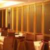 4.隔熱節(jié)能:隔熱性能優(yōu)良,根據(jù)不同入座率,把大空間分割成小空間,以降低空調(diào)電耗;      5.高效防火:采用高效防火材料制作,防火性能良好;      6.美觀大方:表面任意裝飾,可與室內(nèi)統(tǒng)一裝飾效果;      7.收放靈活:隔板收放自如,推動靈活,一個人就可以完成隔斷整個過程;      8.收藏方便:收板時,隔板可以隱藏在專用儲柜中,不影響整體美觀;      9.應(yīng)用廣泛:可應(yīng)用于會議廳、展覽廳、餐廳、高潔凈工廠和辦公室等場所;