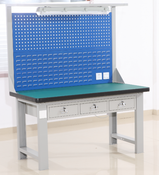 1.工作臺臺面:1800mm*750mm*25mm綠色防靜電耐磨膠皮,防靜電穩(wěn)定。