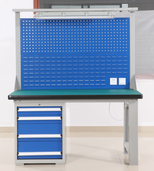1.工作臺臺面:1800mm*750mm*25mm綠色防靜電耐磨膠皮,防靜電穩(wěn)定。