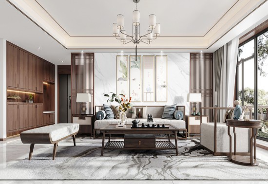 此系新中式客廳背景墻設(shè)計效果圖,包括:沙發(fā)背景墻和電視背景墻,更多裝修效果圖,請關(guān)注企業(yè)官網(wǎng):www.ykshu.cn