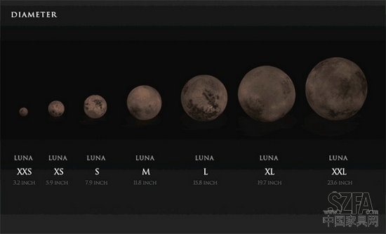 Luna月神燈,主要采用玻璃纖維和無毒膠乳制作而成。全系列月神燈共有七個不同的尺寸,除了最小的XXS配備LED燈和電池外,其余尺寸都標配鹵鎢燈泡和線控開關(guān),可以自由調(diào)節(jié)五檔亮度,并且可以懸吊起來作為吊燈使用。