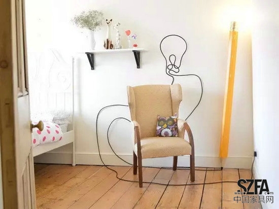 HB 鉛筆造型創(chuàng)意燈具是設(shè)計師 Michael & George 設(shè)計的一款創(chuàng)意產(chǎn)品。整個燈具的造型以HB鉛筆的造型為準,電源線就好像是這根巨大的鉛筆畫出來的線條一樣在家中盤旋,整體效果看上去很詼諧有有趣。