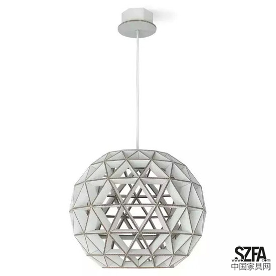 用硬紙板插接而成的一款燈具。燈光通過三角拼接的燈罩投射下漂亮的陰影,簡潔干凈。![]()