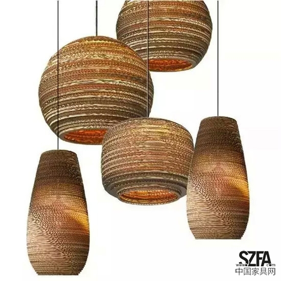 俄羅斯產(chǎn)品設(shè)計師 Dmitry Litz 設(shè)計了一系列硬紙板吊燈,每款吊燈的燈罩結(jié)構(gòu)簡約,但表面富有不同的紋飾。![]()