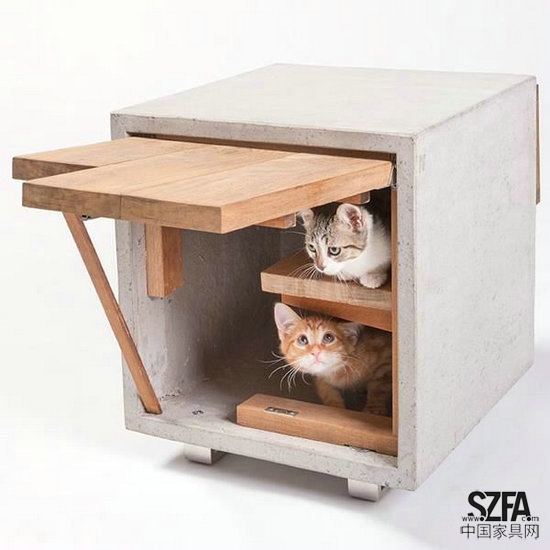 為貓星人和愛犬的設計小屋似乎是建筑師的一個業(yè)余愛好。在美國,也有一個類似的項目名為“Architects for Animals ‘GIving Shelter’ ”。 這個活動從 2010 年就開始了,他們邀請當?shù)氐慕ㄖ熁蛘咴O計師捐贈一個為動物設計的庇護所。集中展覽后,將所得的捐款送給跟動物相關的組織。 上一次的展覽是在洛杉磯卡爾弗城(culver city)的 Herman Miller ,邀請了 Formation Association、NAC、DSH 等多個建筑事務所或獨立設計師為喵星人設計戶外居住的房間,并當晚展示所得的門票捐給了一個非盈利的動物組織 FixNation。 Standard 建筑設計的混凝土房子更接近人的房子,有木頭隔板和門窗,是所有貓屋中最堅固的。