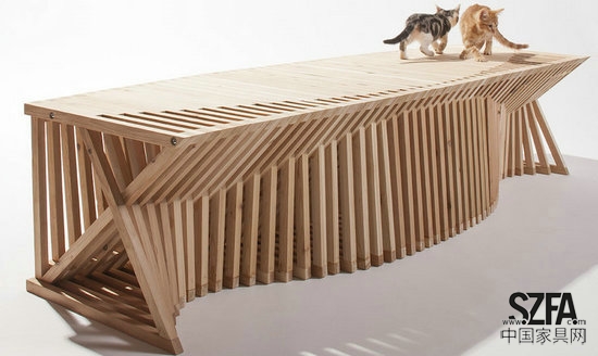 Formation Association 聯(lián)手藝術家 Edgar Arceneaux 設計的木條貓屋,像一個小型涼亭,很透氣。