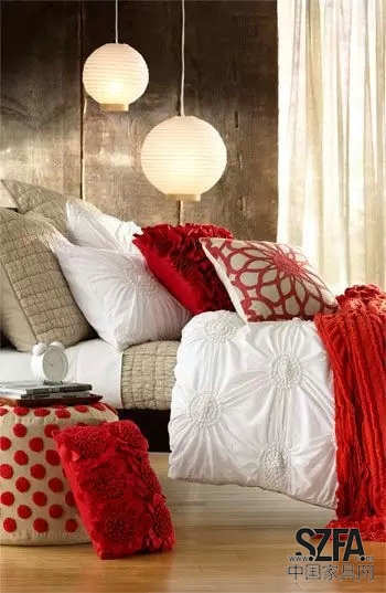 將灰色系的床上用品換成鮮紅