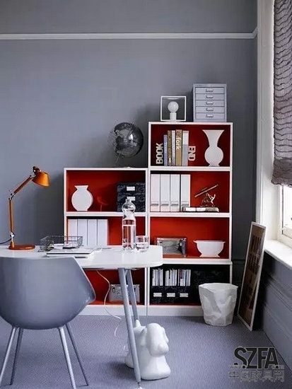 但如果在書房中加上強烈的紅色