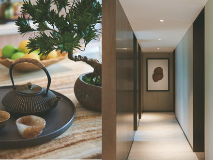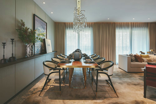 新中式,當下時代的議題,東方的豐富細膩,以現(xiàn)代的方式詮釋,將生活形態(tài)和美學意識轉(zhuǎn)化成一種無聲卻可以感知享受的設計語言。對于意境氛圍的營造,設計師從細節(jié)入手,餐廳的掛畫、花藝綠植、擺件,組合成意境小景,賦予日常生活審美情趣。