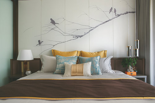 很多時候,我們只需要一幅簡單有力量的掛畫來豐富空間內(nèi)涵。好的設計,既是融合的又是獨立的。譬如,主臥的設計自成一格,中式韻味頗濃,但在細節(jié)處卻可以看到與客廳的呼應,明黃色的抱枕、金屬吊燈、綠植盆摘、單椅的造型都能再客廳覓得影子。兒童房則跳脫出風格的籬藩,賦予主題,故事,個性,喜好,是對于童年夢想的小小滿足。